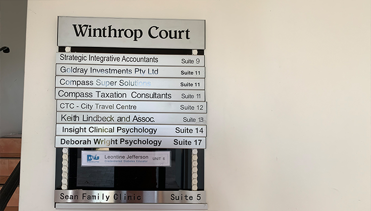 诊所位于Winthrop区,Somerville大道143-147号5室,邮编6150。该位置距离菲奥娜斯坦利医院(Fiona Stanley Hospital)和南北高速公路通道(Freeway Access North&South)不到3公里,距离罗伊高速公路通道(Roe Highway Access)不到6公里。